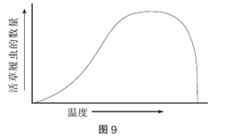 图9是草履虫的存活数量与温度的关系曲线,属于自变量的是( )。