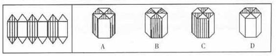 D本题可以采用逆向思维的方式来解题,将右侧的四个图形按照左侧的小图形划分,可知,D项: