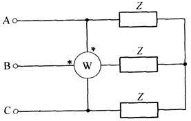 图示三相对称三线制电路中线电压为380V,且各负载Z=44Ω,则功率表的读数为应