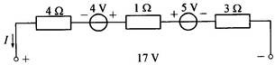 由KVL定律得:(4+1+3)I+4-5=-17,即:8I=-16求得:I=-2A。