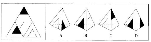 左边给定的是纸盒的外表面,下面哪一项不能由它折叠而成?