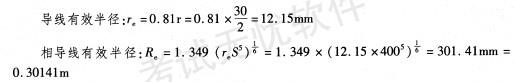 注:有效半径re与导线的材料和结构尺寸有关,钢芯铝绞线约为0.81r。