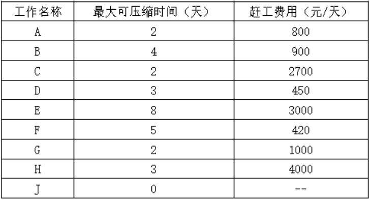 泵站工程施工进度计划(单位:天)施工中发生如下事件:事件1:承包人在该泵站工程开工后第46 天进度检查时发现,A 工作和B 工作基本完成,已开始的C 工作施工工期进度滞后5 天,项目部根据赶工参数(如下表)对相关工作进行压缩,确保完工日期不变。赶工参数表