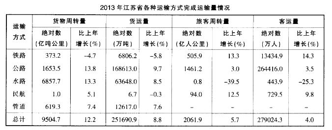 根据以下资料,回答下列问题。 2013年江苏省全年完成港口货物吞吐量21.4亿