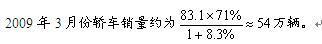 2009年3月份轿车销量约为多少万辆?( )A.64 B.59 C.54 D.50