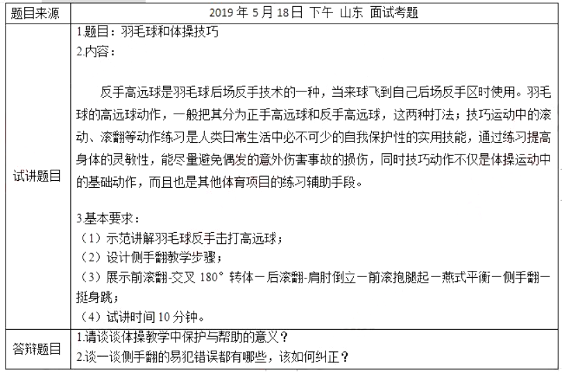 初中体育《羽毛球和体操技巧》 一、考题回顾
