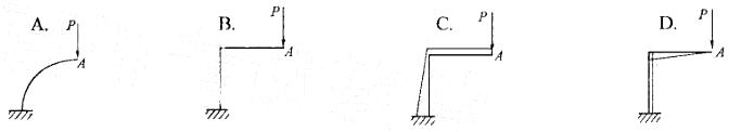 图示各种结构中,欲求A点竖向位移,能用图乘法的为: