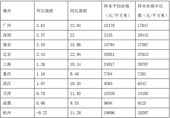 表2:2013 年4 月十大城市主城区二手住宅价格指数