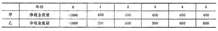 共用题干某地块有两个投资方案甲、乙,甲可建宾馆,乙可以建餐厅,两个方案5年的净现金流量如表所示,折现率为10%。