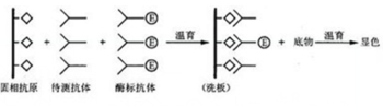 竞争法主要用于测定小分子抗原。原理为先用抗小分子的特异性抗体如同双抗体夹心法一样包被固相,然后同时加入待测样本和酶标记的小分子,待测样本中的小分子与酶标小分子竞争与固相上的抗小分子的特异性抗体结合,温育一定时间后洗涤,加入酶底物显色。