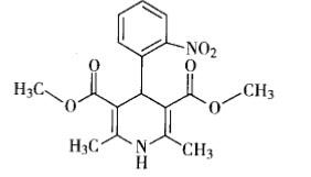 考查硝苯地平的化学结构。该结构为二氢吡啶类药物,由于二氢吡啶环上取代基为对称结构,硝基又位于邻位是硝苯地平的化学结构,故选A答案。