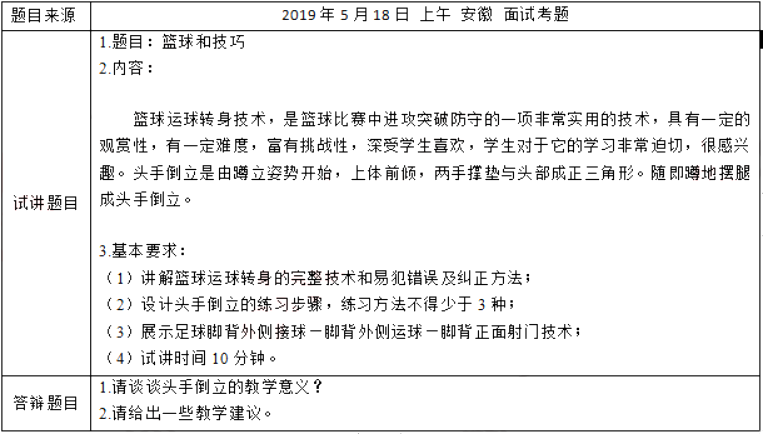 高中体育《篮球运球转身和头手倒立》 一、考题回顾