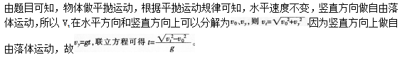 一物体从某一高度以v0的速率水平抛出,已知它落地时的速度大小为vt,那么它运动的时间是()。