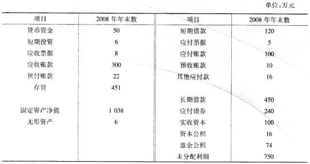 共用题干 某建筑公司2008年年末有关资产、负债和所有者权益资料见下表。根据以