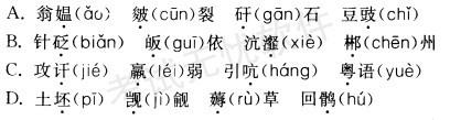 下列词语中加点的字的读音完全正确的一组是()。A.B.C.D.