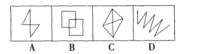 A解析本题考点为组内图形间的特点,题干图形中各们部分的位置关系分别为相连、相交、相连、相交,所以问号处应该选一个相连的图,排除B选项,再观察,题干图形都是一笔