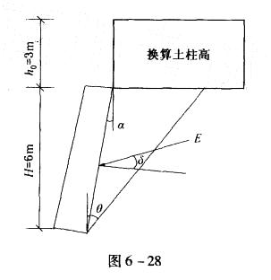 高6m的建筑物路堤挡土墙,如图6-28所示。已知墙背倾角α=9°,墙后填土y=