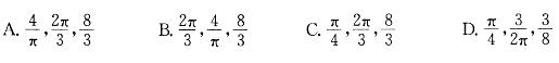 —平面谐波的表达式为y = 0. 03cos(8t+3x + π/4)(SI),则该波的频率v (Hz),波长λ(m)和波速u(m/s)依次为: