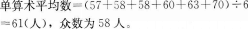 某连锁超市6个分店的职工人数由小到大排序后为57 58 58 60 63 70,其简单算术平均数、众数分别为( )人。