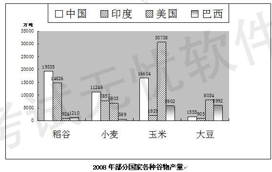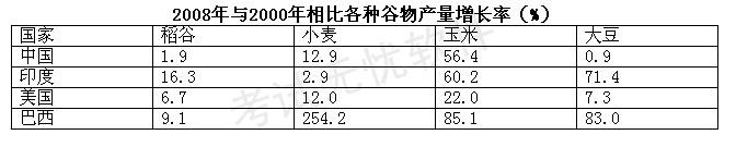 下列四种谷物中,2008年与2000年相比全世界增产量最多的是: