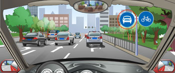 红色圆圈内标志表示左侧道路只供小型车行驶。