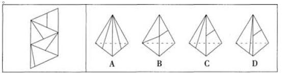 左边给定的是纸盒外表面的展开图,右边哪一项能由它折叠而成?请把它找出来。