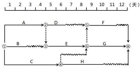 考点:时标网络计划中时间参数的判定。选项C,工作C的总时差为2天;选项E,工作E的最早开始时间为第5天。参见教材P62。@##