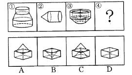下列中的立体图形①是由立体图形②、③和④组合而成,下列哪一项能够填入问号处?