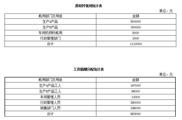 (4)本月生产的A产品生产工时为30000小时,B产品的生产工时为20000小时。