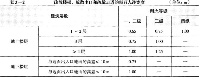除剧场、电影院、礼堂、体育馆外的其他公共建筑的房间疏散门,安全出口、疏散走道和疏散楼梯的各自总宽度,应按表3—2的要求计算确定。当疏散人数不等时,疏散楼梯总净宽度应按该层及以上各楼层人数最多的一层人数计算,地下建筑中上层楼梯的总净宽度应按该层及以下人数最多一层的人数计算。地下或半地下人员密集的厅、室和歌舞娱乐放映游艺场所,其房间疏散门、疏散走道、安全出口和疏散楼梯的各自总宽度,应按每百人不小于1.00m计算确定。办公建筑的门洞口宽度不应小于1.00m,高度不应小于2.10m。首层外门的总宽度应按该层及以上人数最多的一层人数计算确定,不供楼上人员疏散的外门,可按本层人数计算确定。