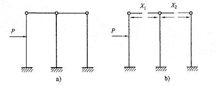图b)是图a)结构的力法基本体系,则力法方程中的系数和自由项为: A.Δ1P>0, δ121P121P>0, δ12>0 D. Δ1P12>0
