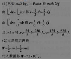 质量为2 k9的物体,在力F=2ti+4t2的作用下由静止从原点开始运动,求: (1)5 S末物体的速度和位置。 (2)5 s内力所做的功。
