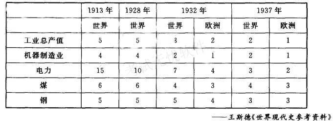 下表是1913—1937年苏联工业总产值及重要工业产品在欧洲和世界的排名(1913年数字是按1939年9月17日以前的疆界计算的)。对此表解读正确的有( ...