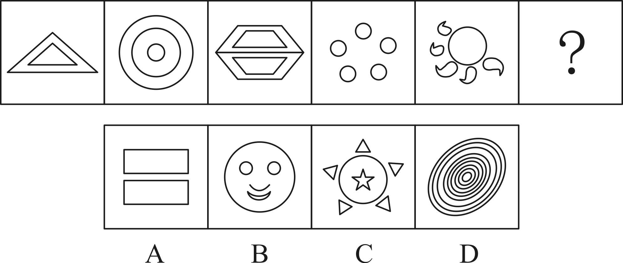 从所给的四个选项中,选择最合适的一个填入问号处,使之呈现一定的规律性: