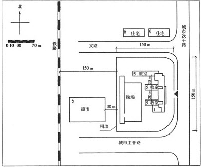 (1)小学选址不当,紧靠城市干道,且距铁路线太近。