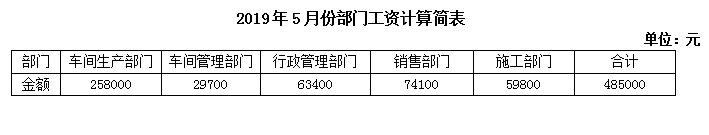 (4)31日,本月各部门工资计算结果如下表: