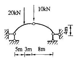 图示三铰拱的水平推力H为: A. 50kN B. 25kN C. 22.