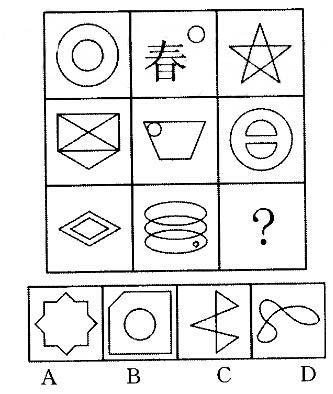 本题考查元素种类。每行图形中都有两个图形包含圆这个元素。故正确答案为B。