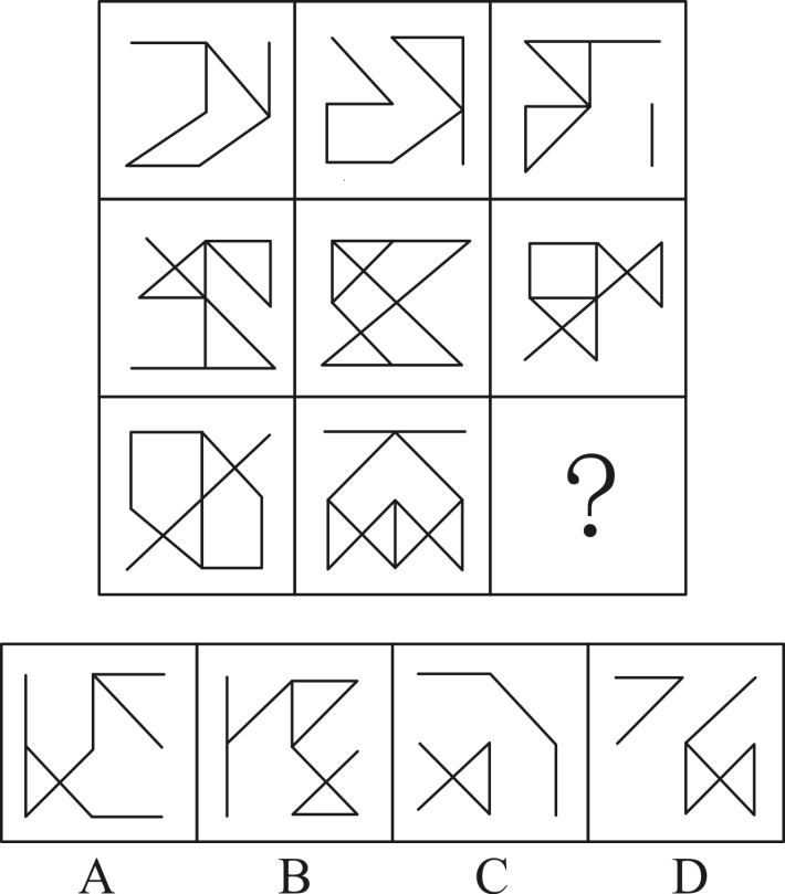从所给的四个选项中,选择最合适的一个填入问号处,使之呈现一定的规律性: