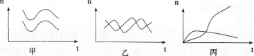 下列三幅图分别表示两种生物种群随时间(t)推移而发生的数量(n)变化。那么,甲、乙、丙三幅图表示的关系依次是( )。 A.竞争、捕食、共生 B.捕食、