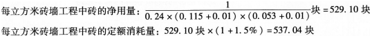 每立方米砖墙工程中砖的定额消耗量的计算过程如下: