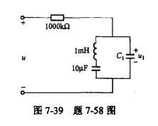 如图7-39所示电路中电压u含有基波和三次谐波,基波角频率为104rad/s。若