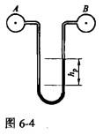 如图6-4所示,用U形水银压差计测量水管A、B两点的压强差,水银面高hp=10c