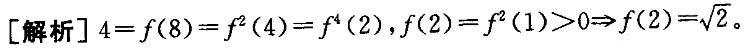 若实值函数f定义域为全体实数,且满足任意x,y:f(x+y)=f(x)f(y)。此时,若f(8) = 4,则有f(2)=( )。
