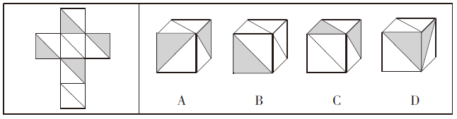 左边给定的是纸盒的外表面,下列哪一项能由它折叠而成?