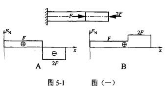 如图5-1所示受力杆件的轴力图有以下四种,其中正确的为( )。
