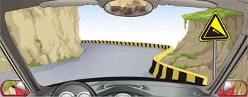 怎样安全通过这种较窄的弯道?A、沿道路右侧行驶 B、挂低速档减速通过 C、沿道路左侧行驶 D、挂高速档加速通过