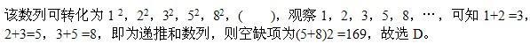 1,4,9,25,64,( )。A.81 B.100 C.121 D.169