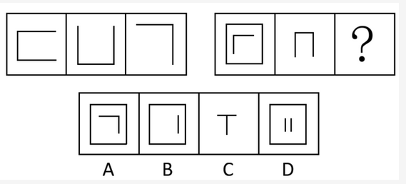 每一组图形中前两个图形叠加去同存异得到第三个图形。故正确答案为B。