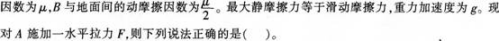 如图所示,A、B两物块的质量分别为2m和m,静止叠放在水平地面上。A、B间的动摩擦